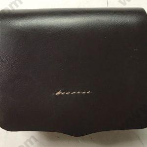 New reproduction percussion cap pouch.Shield shape. Made of black leather and lined with wool. Fits belts up to 2-3/4″ wide893