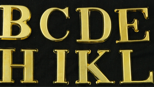 The M1858 Company Letter is made of stamped brass. Wire fasteners on back attach the insignia to the hat. The letter is 1 inch high.