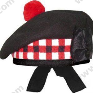 - Features the traditional small pom pom (toorie)on the top, bow on side and black ribbon hanging down behind