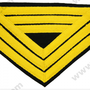 1/2 inch tape applied over wool background. Tape color designates Branch of Service: Infantry: Sky Blue; Artillery: Red; Cavalry: Yellow. Background color should be the color of the coat.